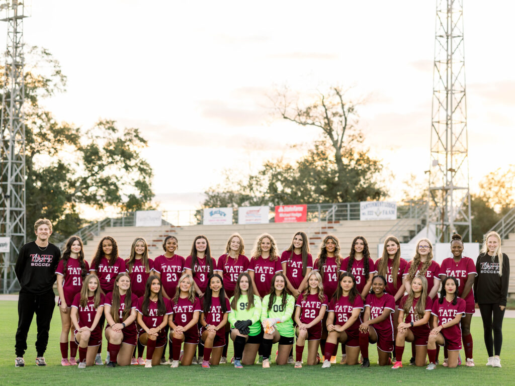 Photographing the Tate High School Women’s Soccer Team this year was one of those experiences that reminds me why I love what I do. No matter how cold it gets, and this year, it was freezing. The kind of cold that makes your hands numb between shots and your breath visible under the stadium lights. But, once the athletes stepped onto the field, the energy completely overpowered the temperature.